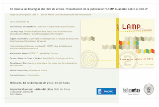 El día 18 de diciembre de 2013 se presenta el tercer número del Cuaderno sobre el Libro (02), la publicación del grupo de investigación UCM "El libro de artista como materialización del pensamiento" en la Imprenta Municipal - Artes del Libro de Madrid.